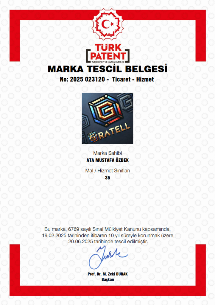 GRATELL markası, fonetik yapısı itibarıyla uluslararası pazarda yankı uyandıracak, güçlü ve prestijli bir kimliğe sahiptir. İsmin hem okunuşundaki akıcılık hem de yarattığı “büyük ve köklü” algısı, markayı doğrudan yüksek kalite ve kurumsallık zeminine oturtmaktadır.