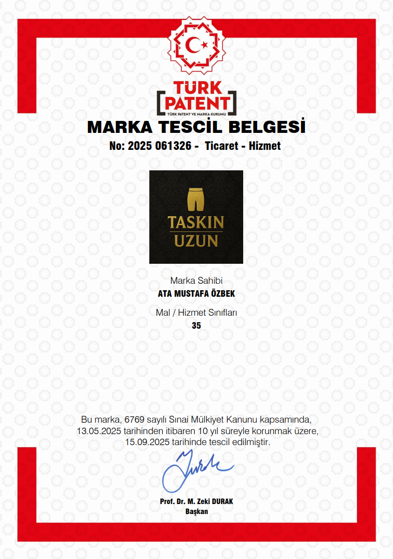 TAŞKIN UZUN ismi, moda ve iş dünyasında “isim-soyisim” markalarının taşıdığı sarsılmaz güveni ve “kurucu otoritesini” temsil eden, karakteristik gücü yüksek bir marka kimliğidir. Özellikle lüks erkek giyim, özel dikim (bespoke) terzilik, deri tasarımı veya mimarlık/danışmanlık gibi prestijin ve kişisel ustalığın ön planda olduğu sektörlerde; tüketici zihninde doğrudan köklü bir geçmişe sahip bir “imza marka” algısı yaratmaktadır. Bu isim, ürünü veya hizmeti anonimlikten kurtarıp, arkasında gerçek bir uzman ve muhatap olduğu hissini vererek, hedef kitlede güvene dayalı satın alma kararını güçlendiren stratejik bir etkiye sahiptir.